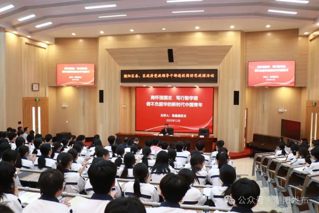 12月18日,区长查晶晶到林百欣中学上思政课,围绕“胸怀强国志 笃行勤学路 做不负韶华的新时代中国青年”这一主题,勉励青年学子珍惜青春、笃行实干,为国家发展、潮阳建设贡献青春智慧和力量。