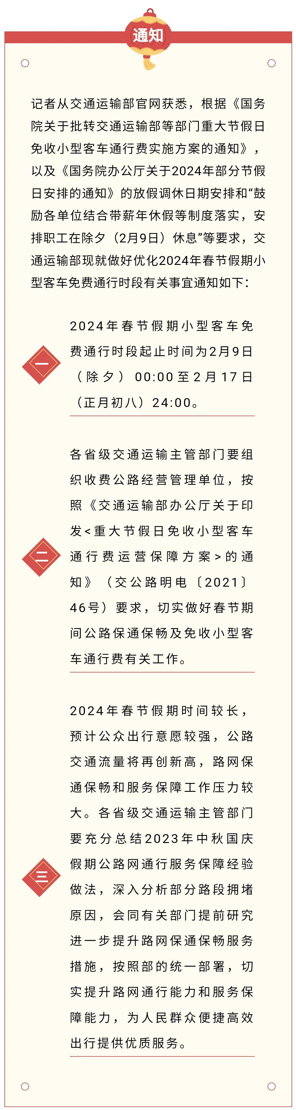 今年春节,高速免费9天!