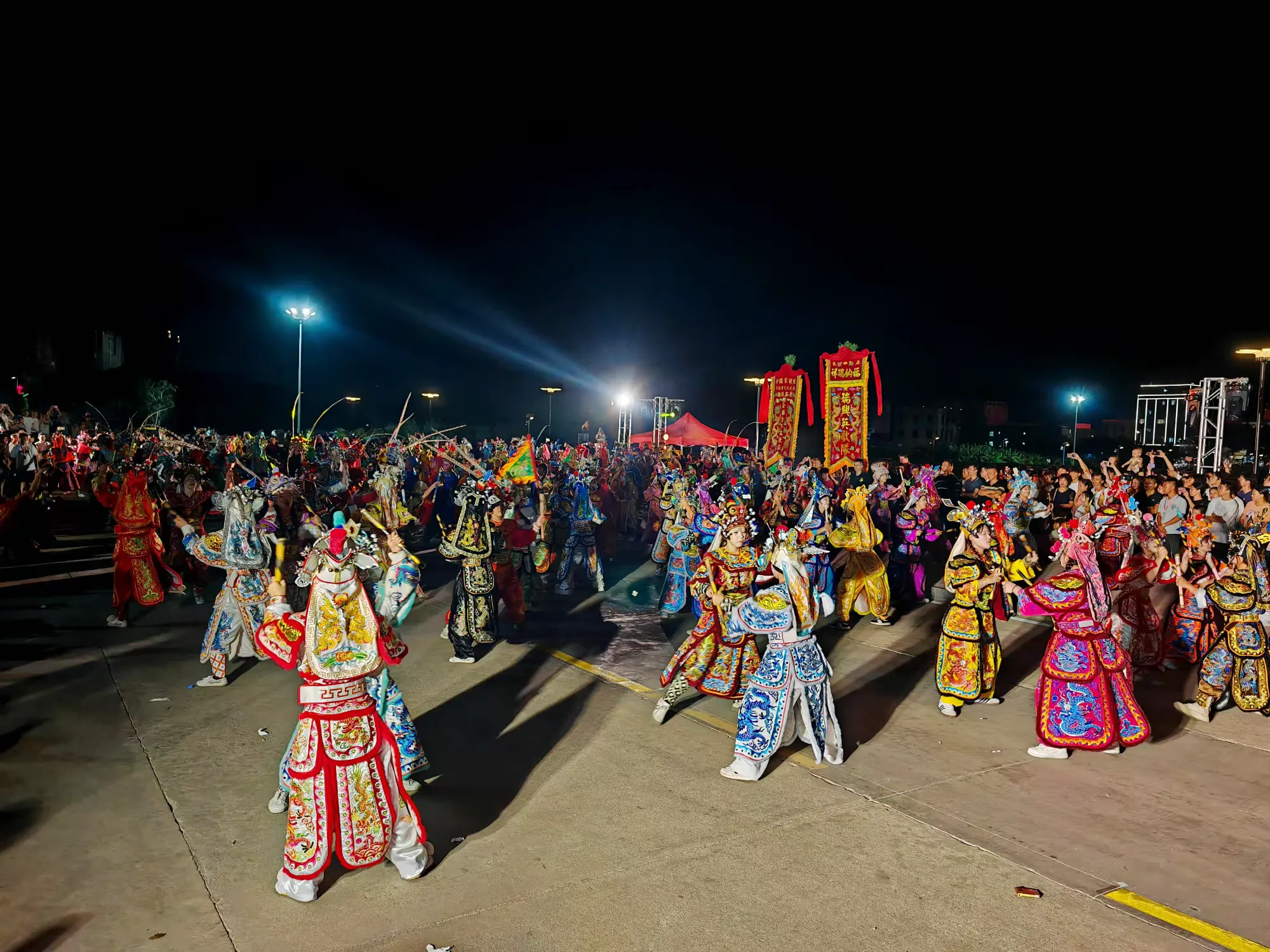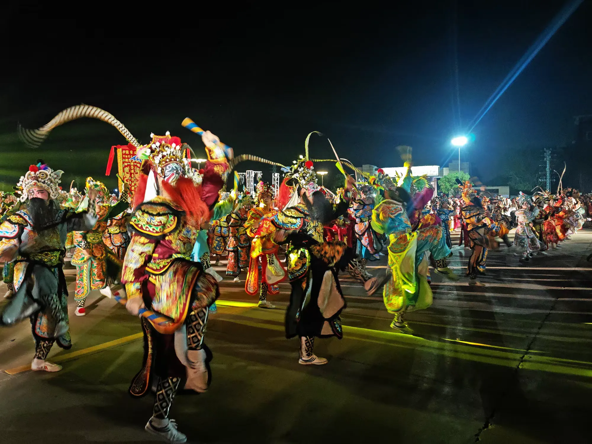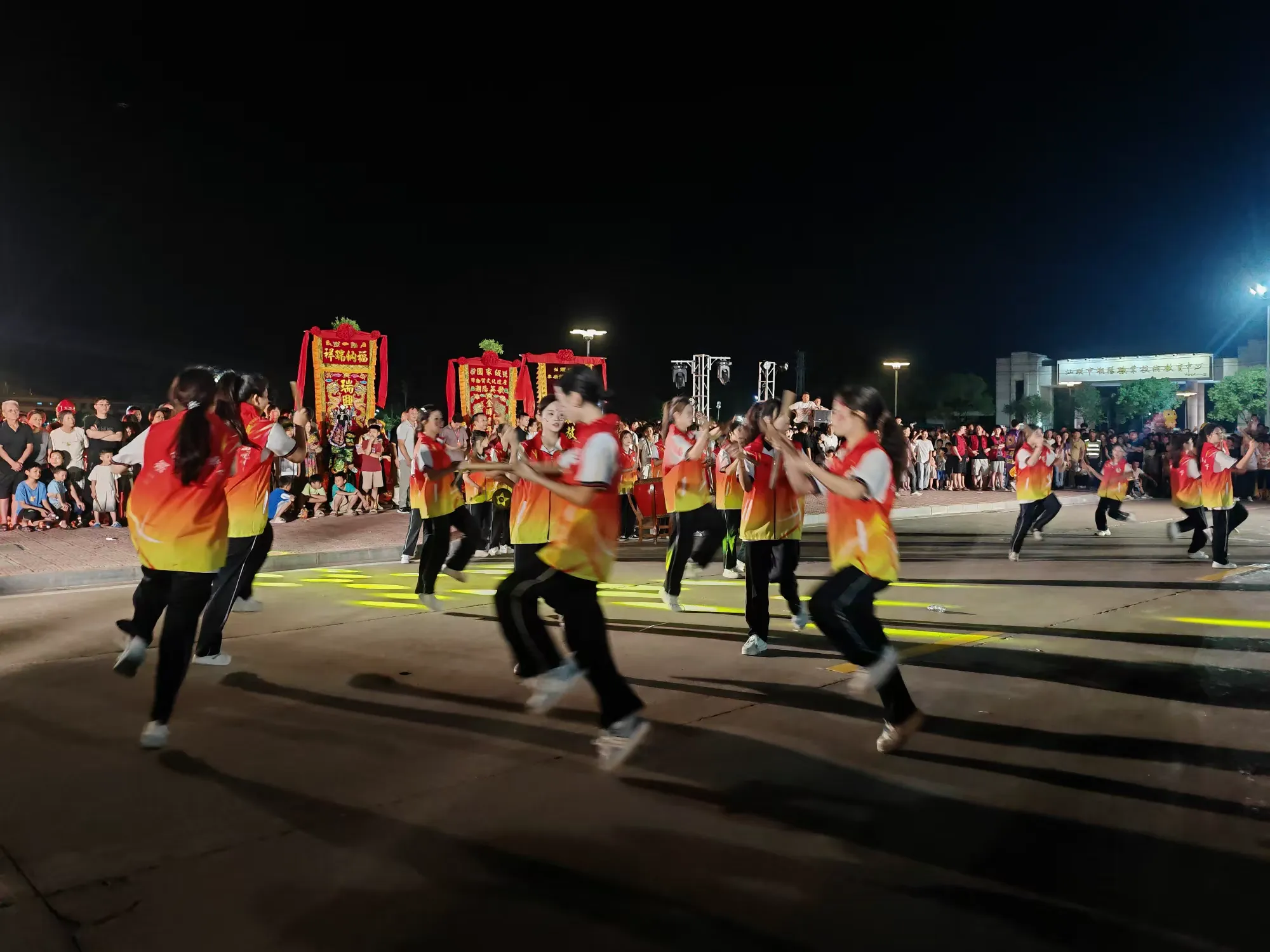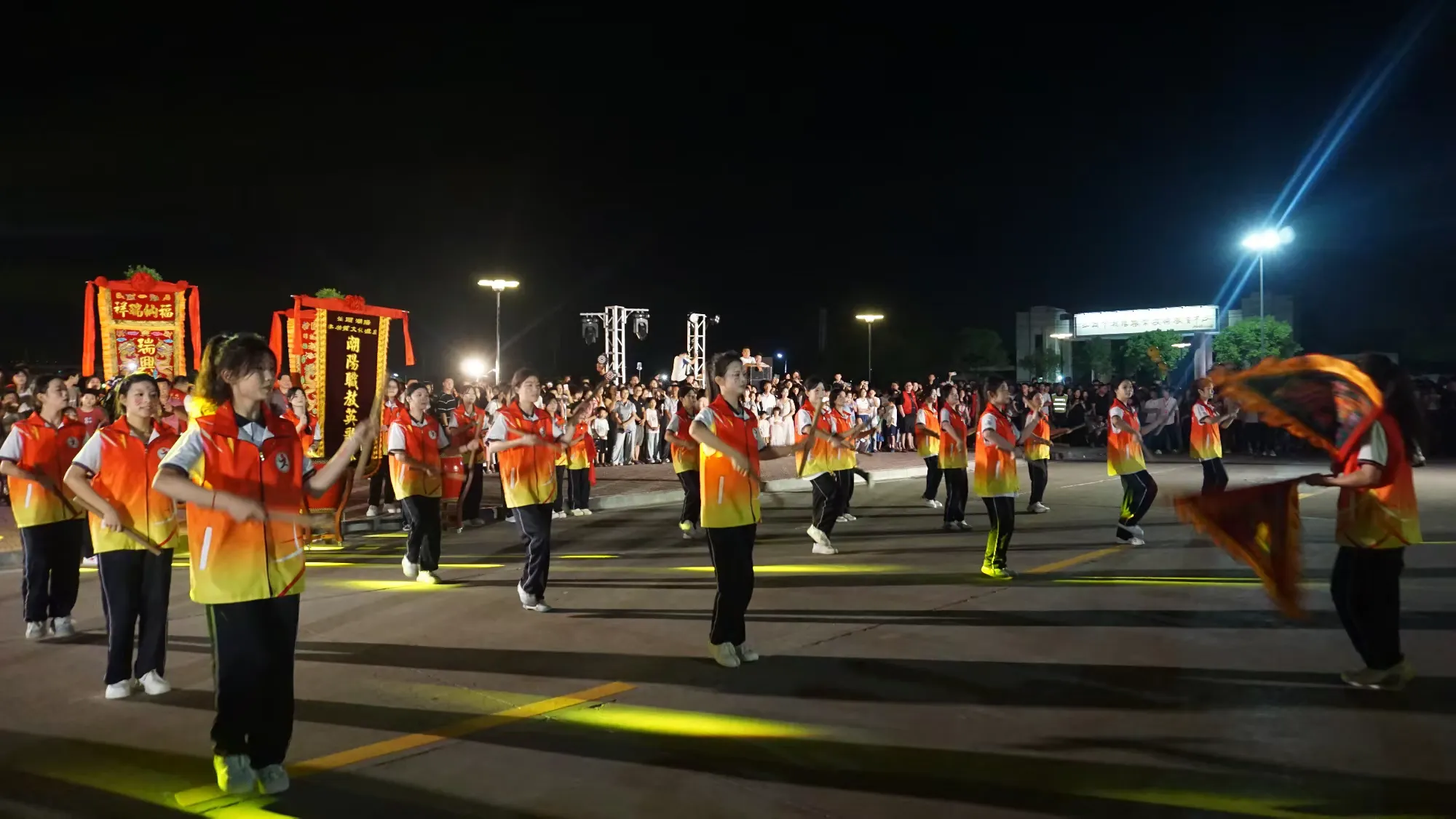 灯光下,队员们的身影与成片稻田相映成趣,非遗文化的活力与田园风光完美融合,让观众沉浸式感受传统文化与自然之美。