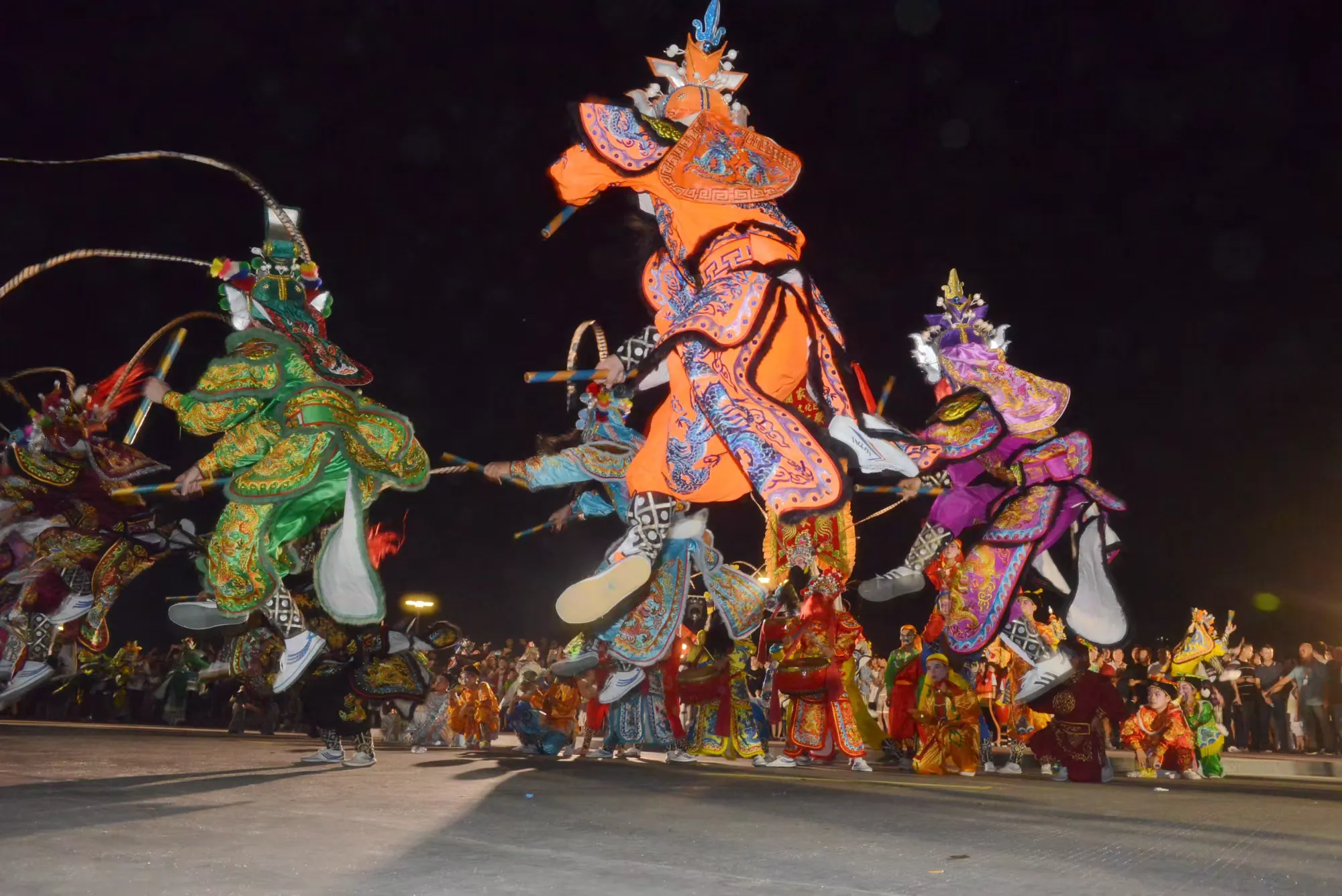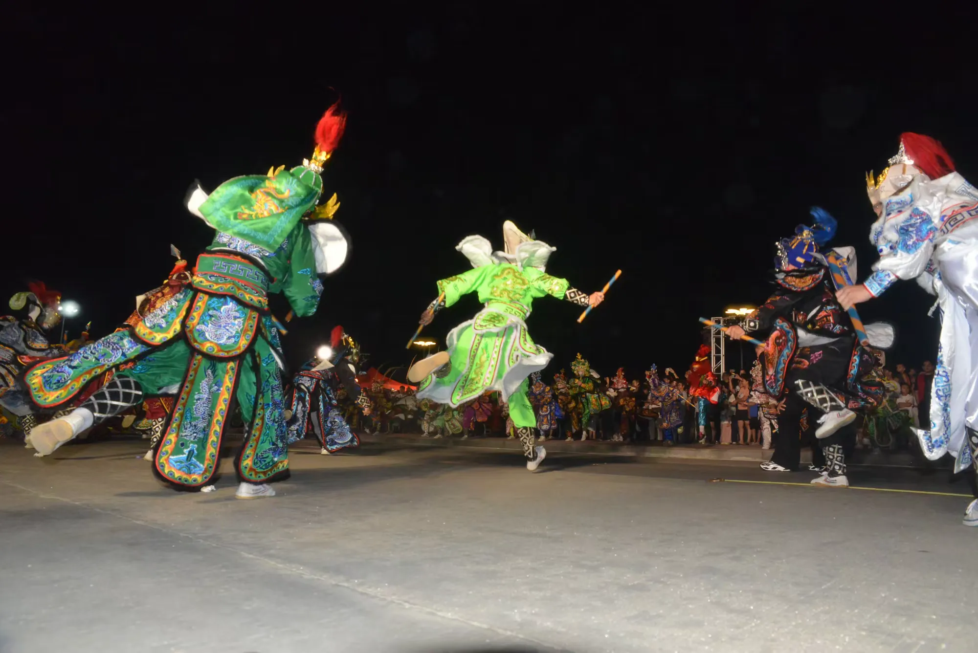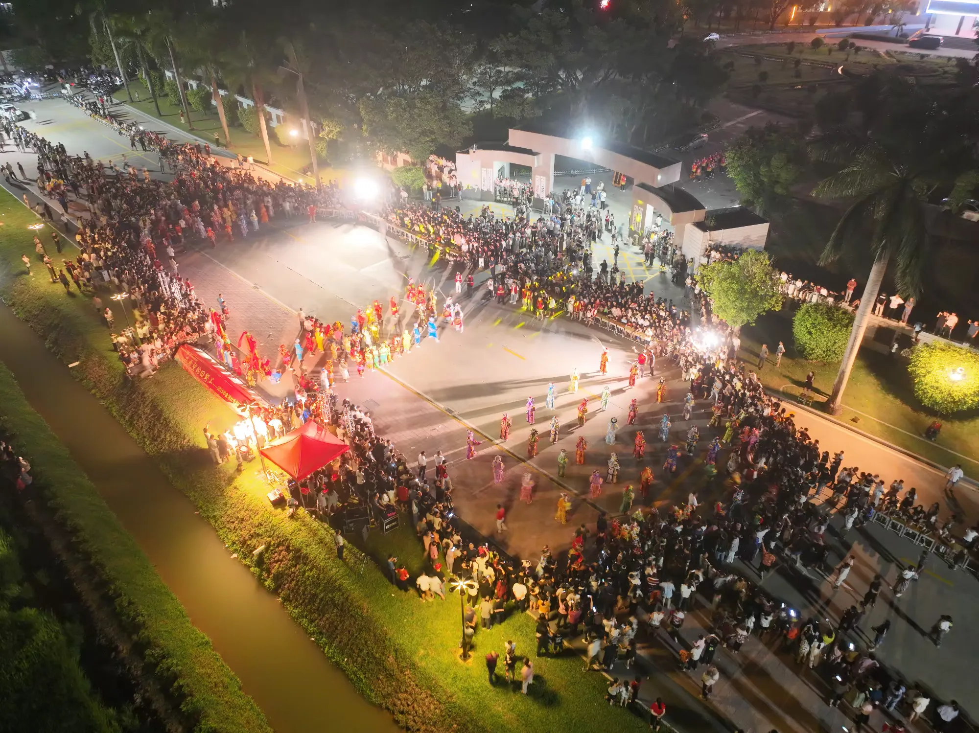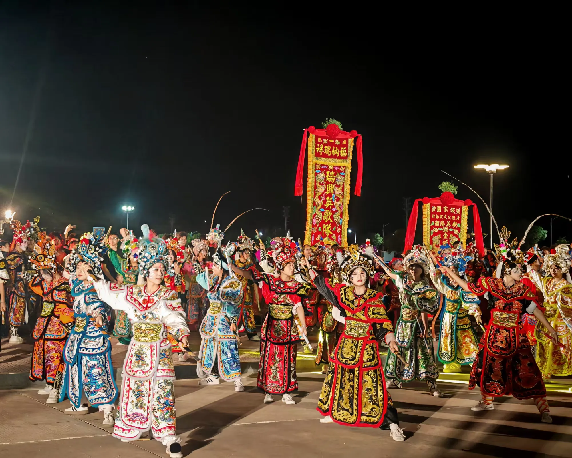 灯光下,队员们的身影与成片稻田相映成趣,非遗文化的活力与田园风光完美融合,让观众沉浸式感受传统文化与自然之美。