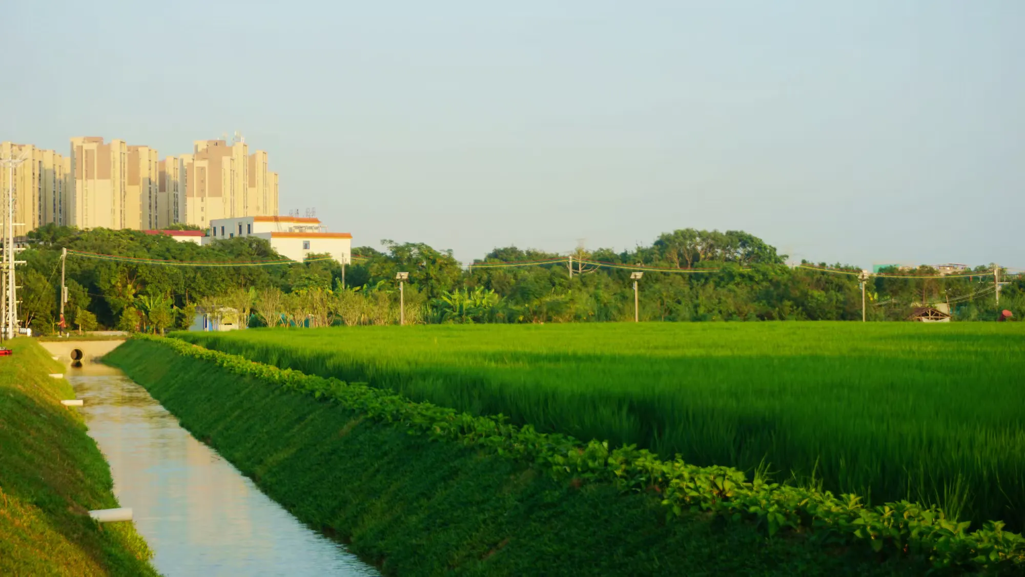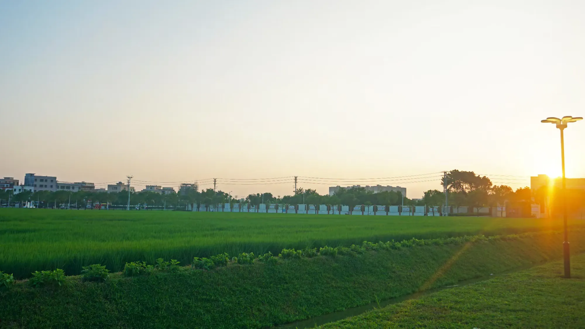 作为活动举办地的超级水稻休闲农场,位于金浦文体公园中心区域,依托80多亩农田打造,是“社村”试点合作农场。农场种植华航香银尖、华航85等优质水稻品种,通过机耕路提质改造融入科普标识,形成集品种示范、农业科教、研学实践、田园观光于一体的特色基地。周边配套环形跑道、绿化景观带和太阳能路灯系统,兼具农业示范与市民休闲功能。农场不仅是优质水稻示范基地,还在培育绣球花,未来将形成“稻田铺绿、鲜花点缀”的生态景观。