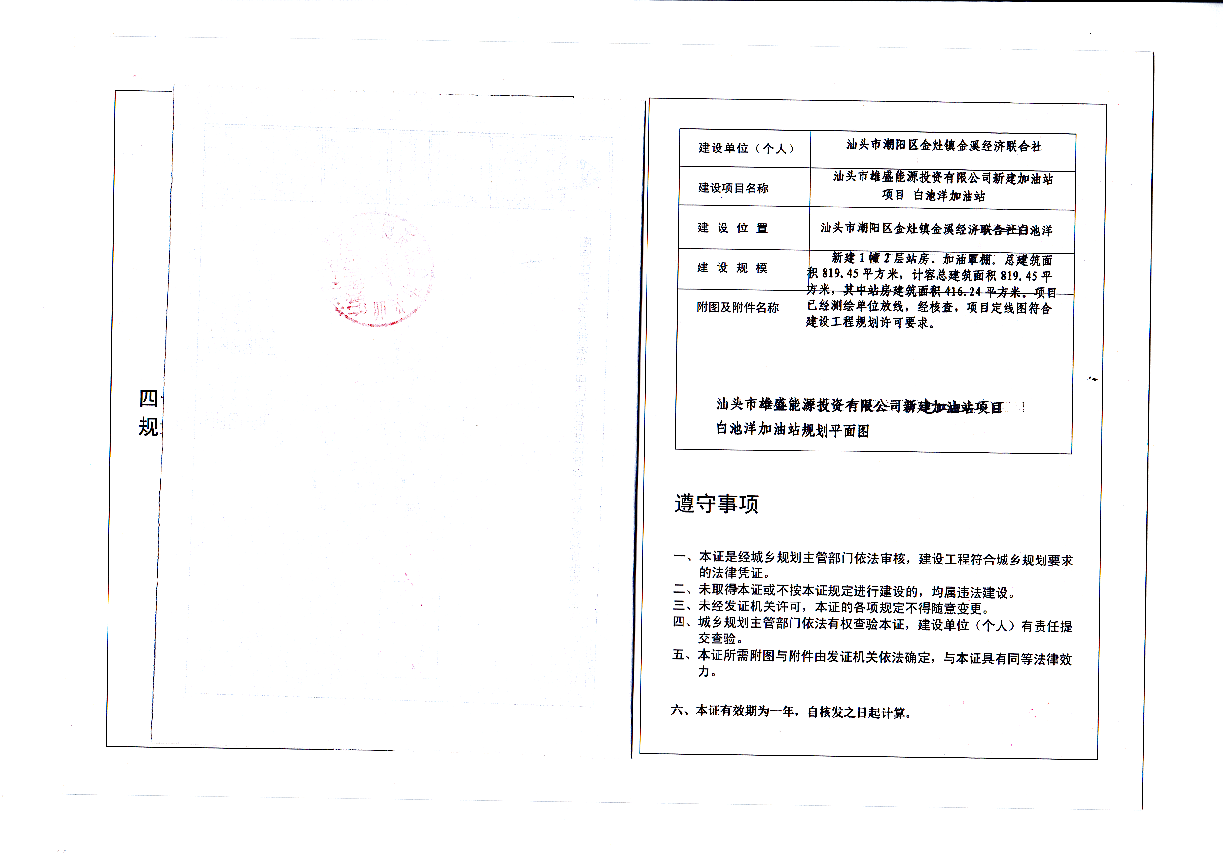 项目名称:汕头市雄盛能源投资有限公司新建加油站项目 白池洋加油站