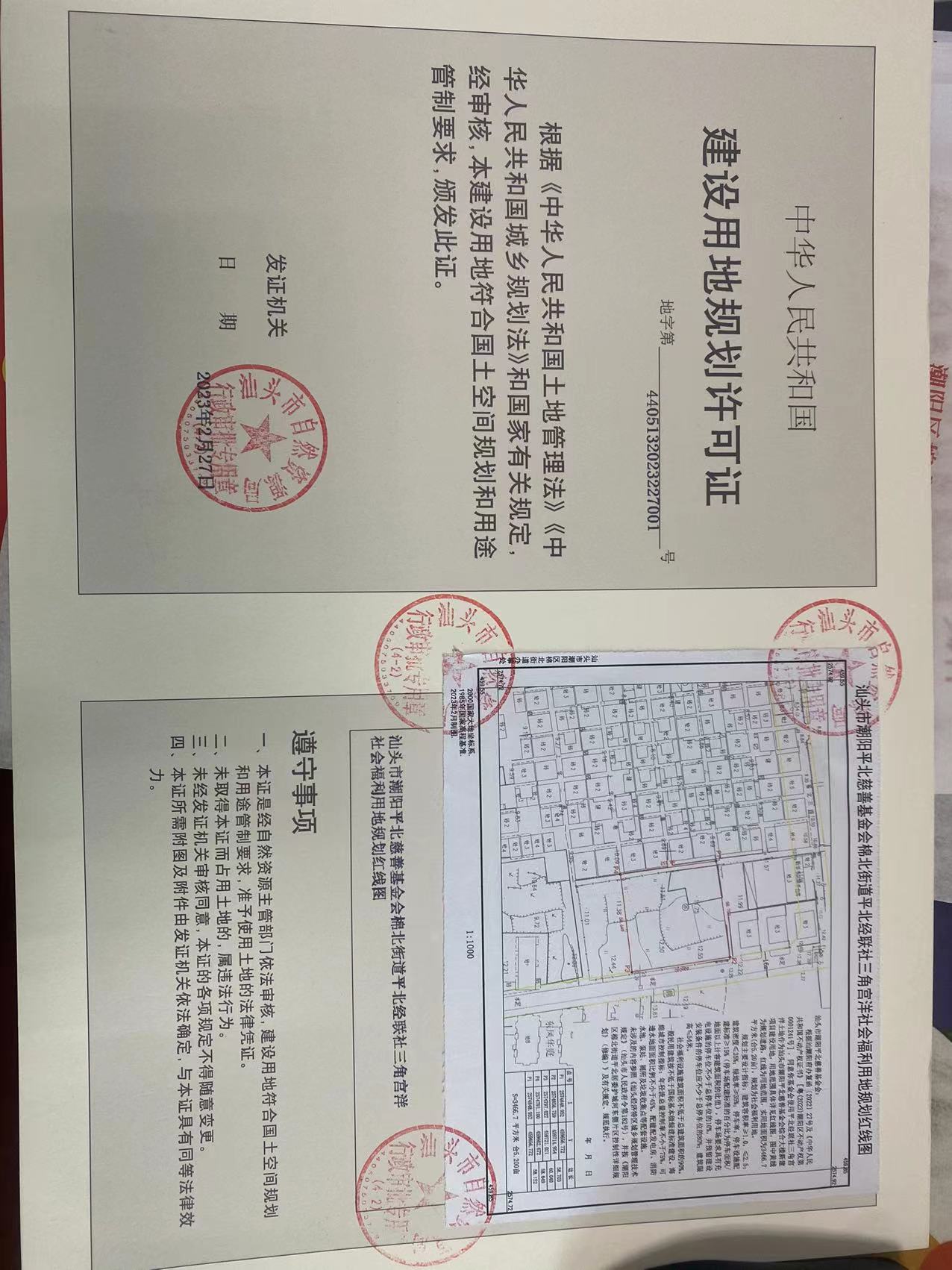 根据《中华人民共和国城乡规划法》、《广东省城乡规划条例》、《汕头经济特区城乡规划条例》等有关规定,经审核,本建设用地规划符合城乡规划要求,颁发此证,特此公告。