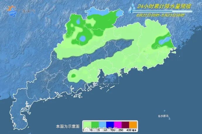 22日,粤北的偏北地区、粤西的沿海地区多云有雷阵雨,局部大雨,其余大部分市县多云间晴,有分散雷阵雨。