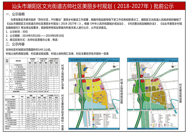 汕头市潮阳区文光街道古帅社区美丽乡村规划(2018-2027)批前公示