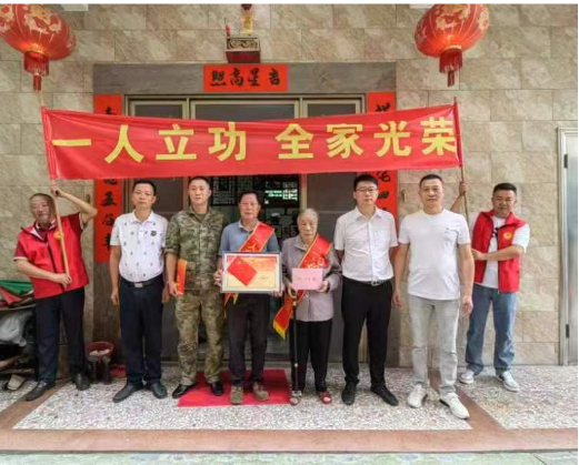 6月4日,潮阳区退役军人事务局联合区人武部、关埠镇为2023年在部队获得三级表彰现役军人家庭送去立功喜报,让军人军属共享喜悦荣光。